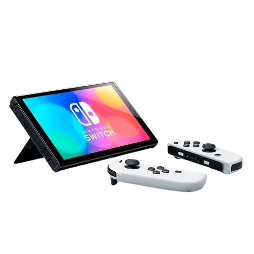 Jogue na sua TV em casa ou jogue no modo portátil em uma tela OLED com cores vibrantes de 7 polegadas (17,78 cm) com o console Nintendo Switch - Modelo OLED. O console também possui 64 GB de armazenamento interno (parte da memória é reservada para uso do próprio console), áudio aprimorado nos modos portátil e semiportátil, um amplo suporte ajustável e uma base com uma porta LAN integrada.